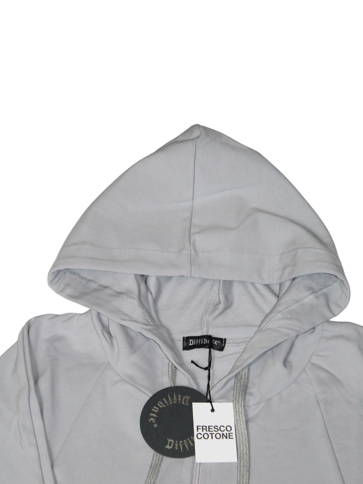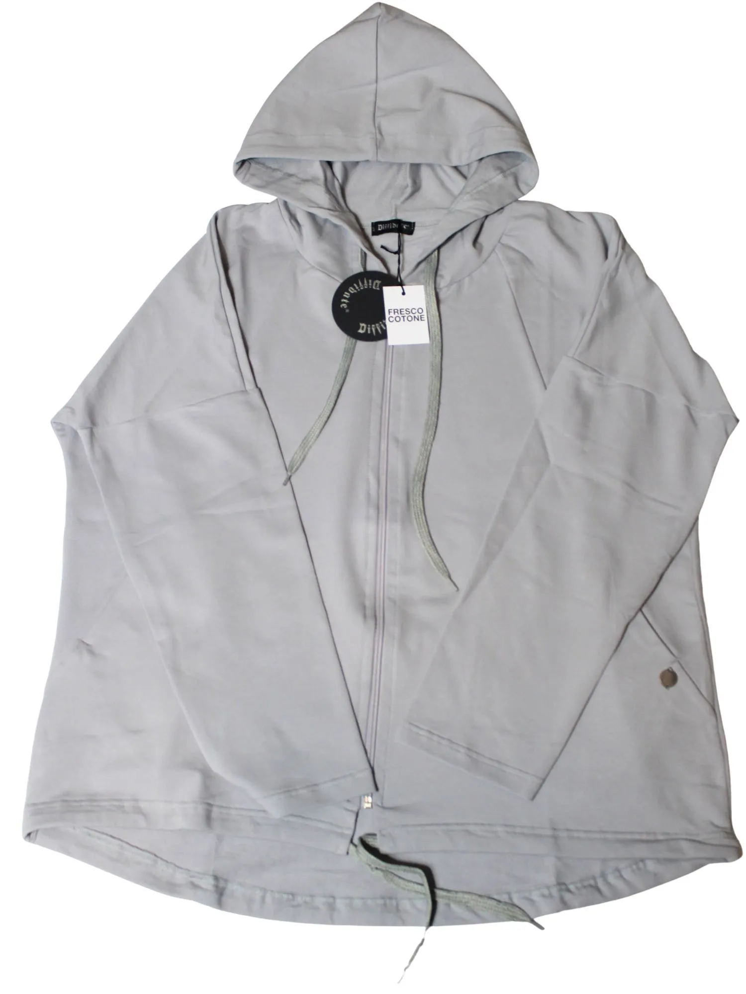 Giubbino con cappuccio Diffidate in fresco cotone senza fascione e tasche frontali in vestibilitร  over.