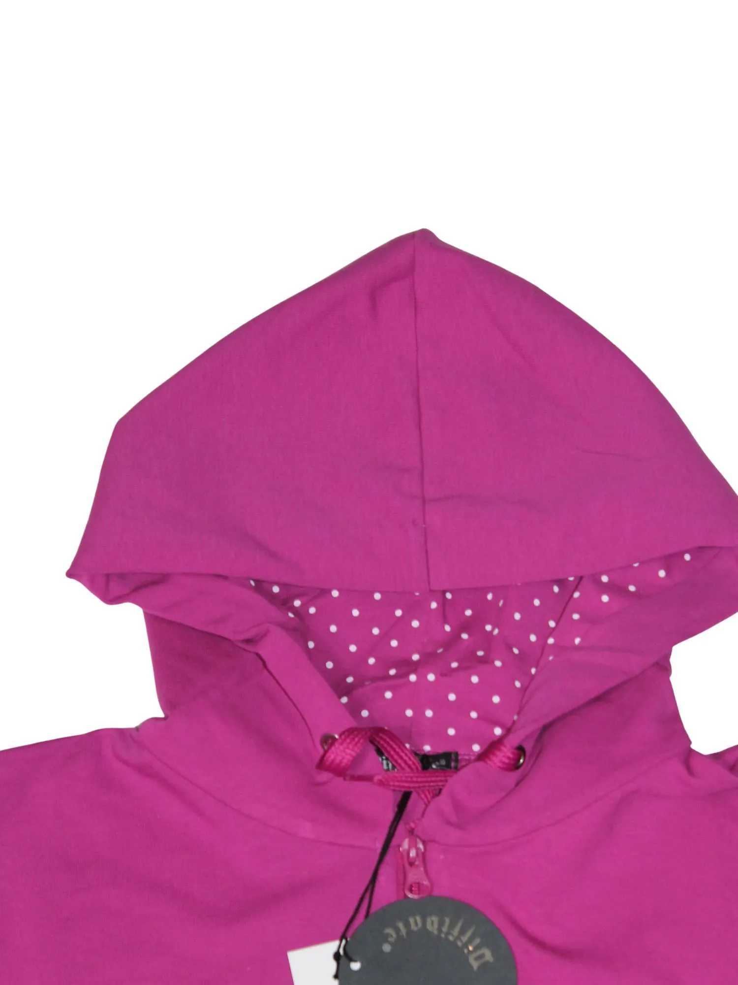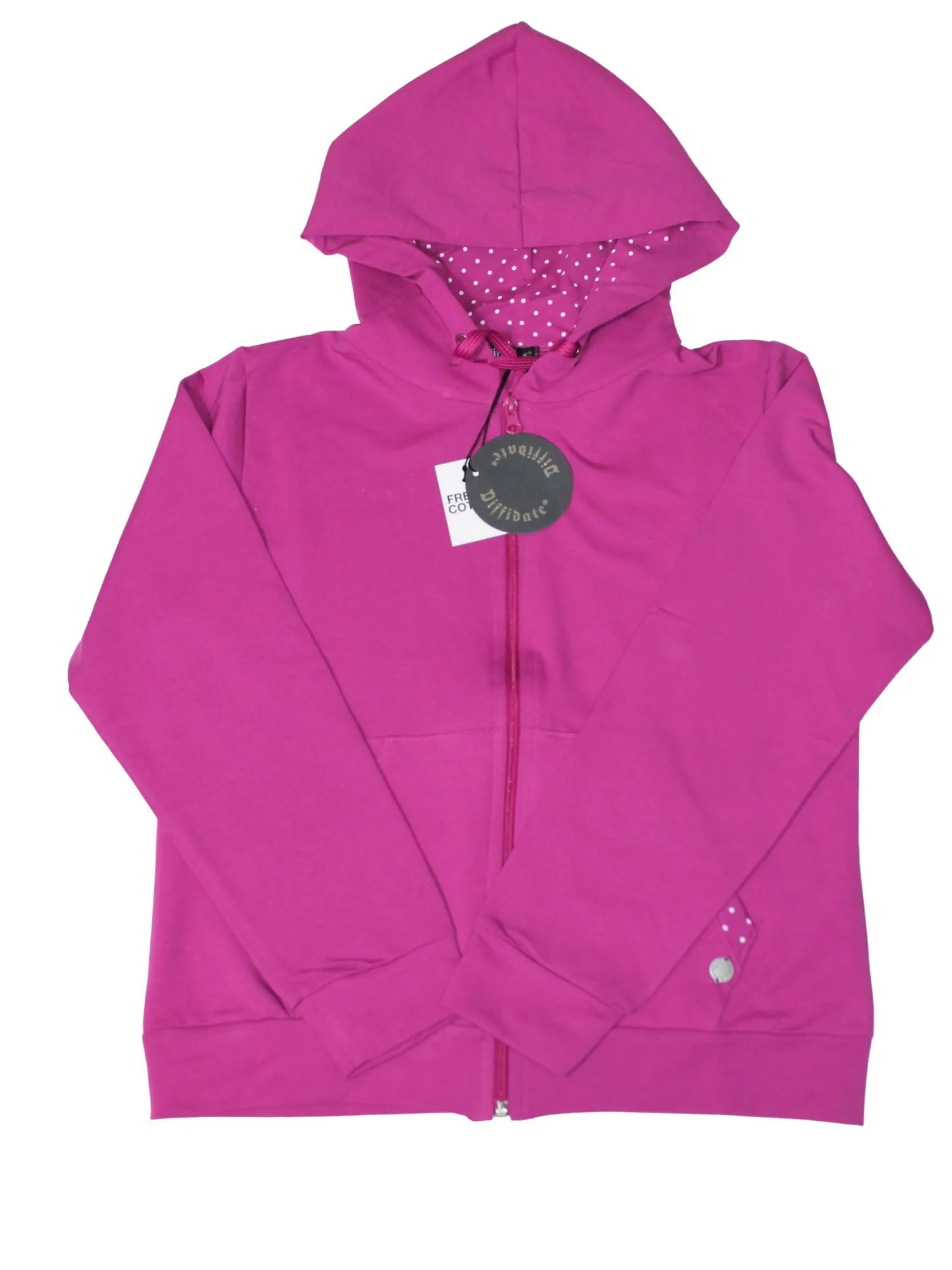 Giubbino Diffidate in fresco cotone con fascione eย  tasche frontali con pois nel cappuccio.
