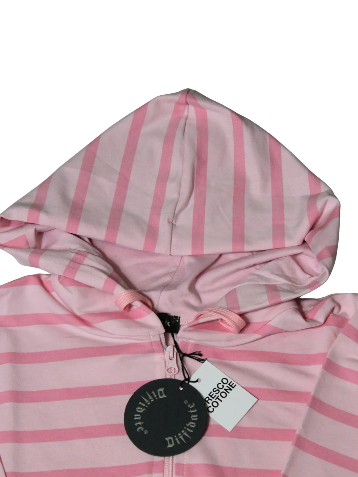 Giubbino in fresco cotone con cappuccio rigato – rosa tenue