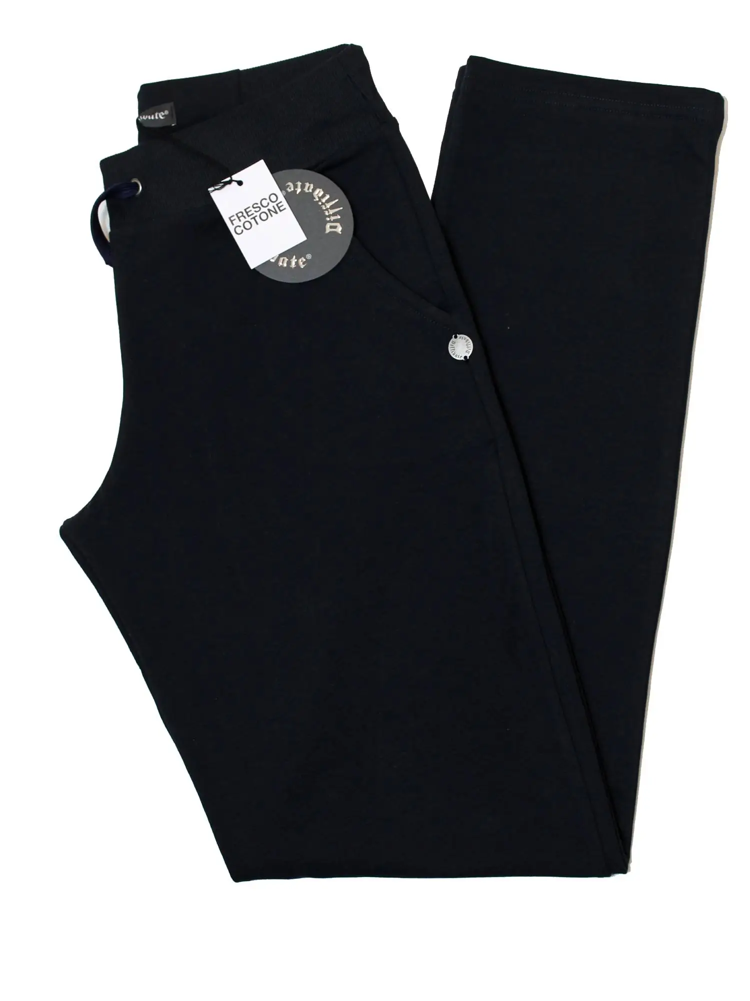 Pantalone Diffidate in fresco cotone con coulisse in vita e tasche, dritto in fondo. Ottima vestibilità dalla S alla XXL.