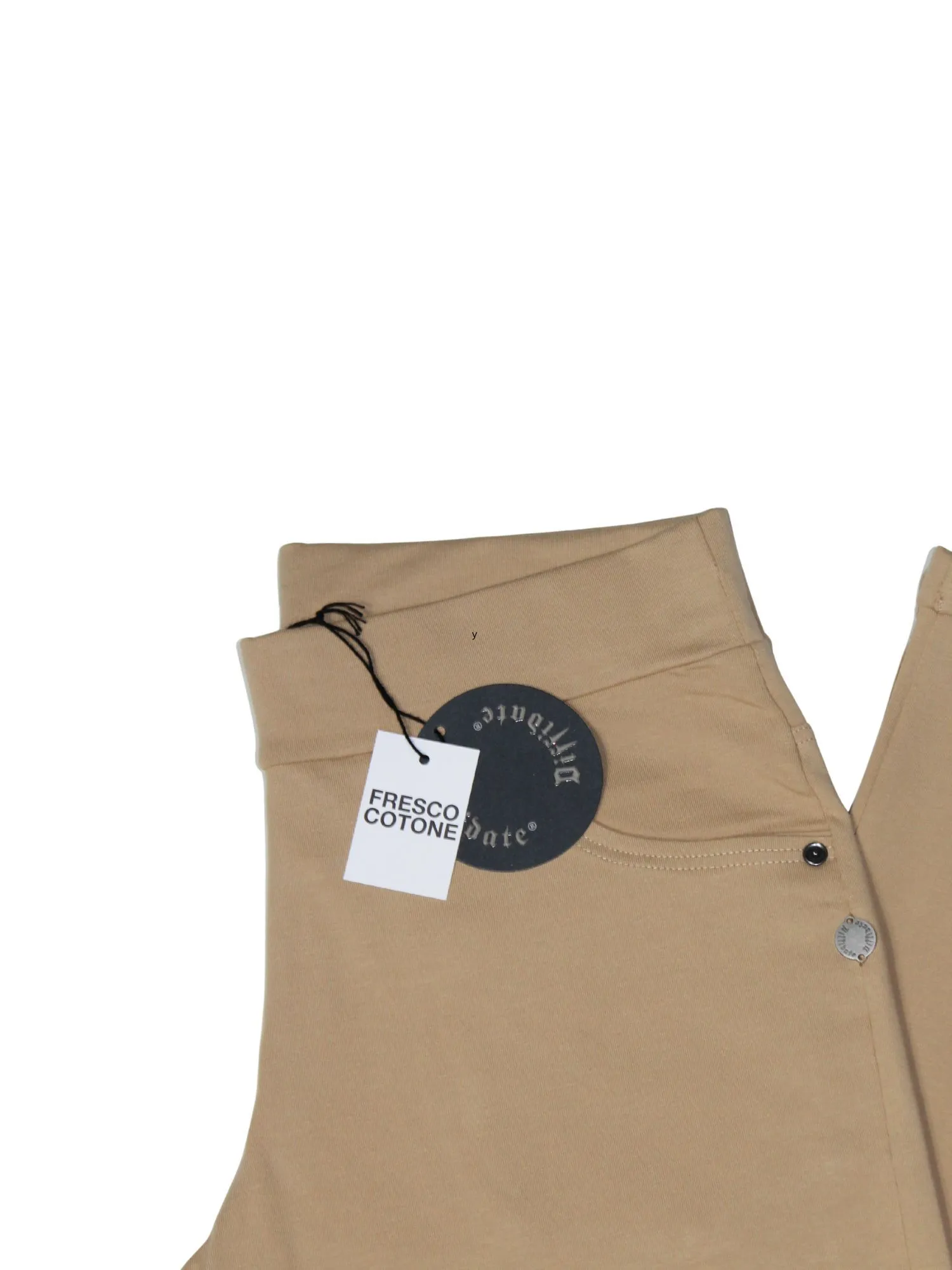 Pantalone Diffidate in fresco cotone primaverile modello jeans, con tasche davanti e taschine sul retro, modello senza coulisse. Sembra davvero un pantalone e chi dice che non lo sia a tutti gli effetti?