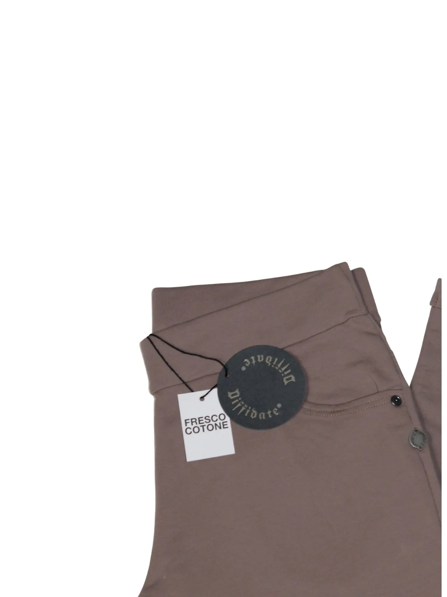 Pantalone Diffidate in fresco cotone primaverile modello jeans, con tasche davanti e taschine sul retro, modello senza coulisse. Sembra davvero un pantalone e chi dice che non lo sia a tutti gli effetti?