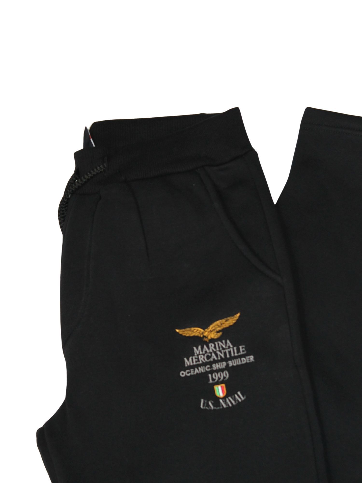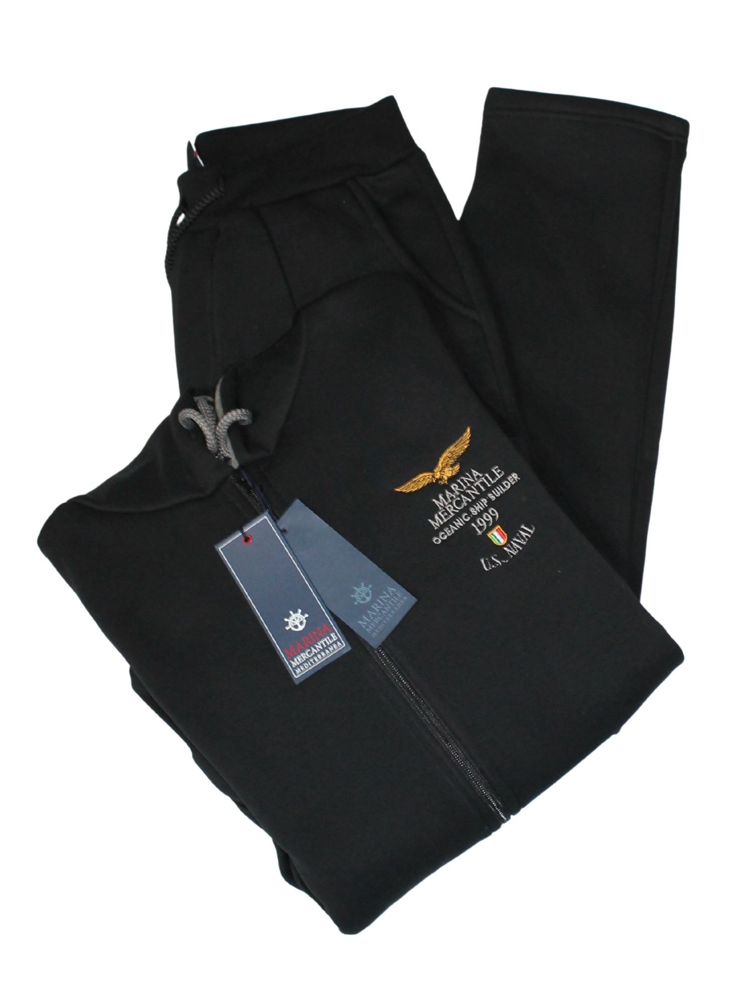 Tuta da uomo in felpa pesante composta da giubbino con cappuccio e pantalone dritto.
